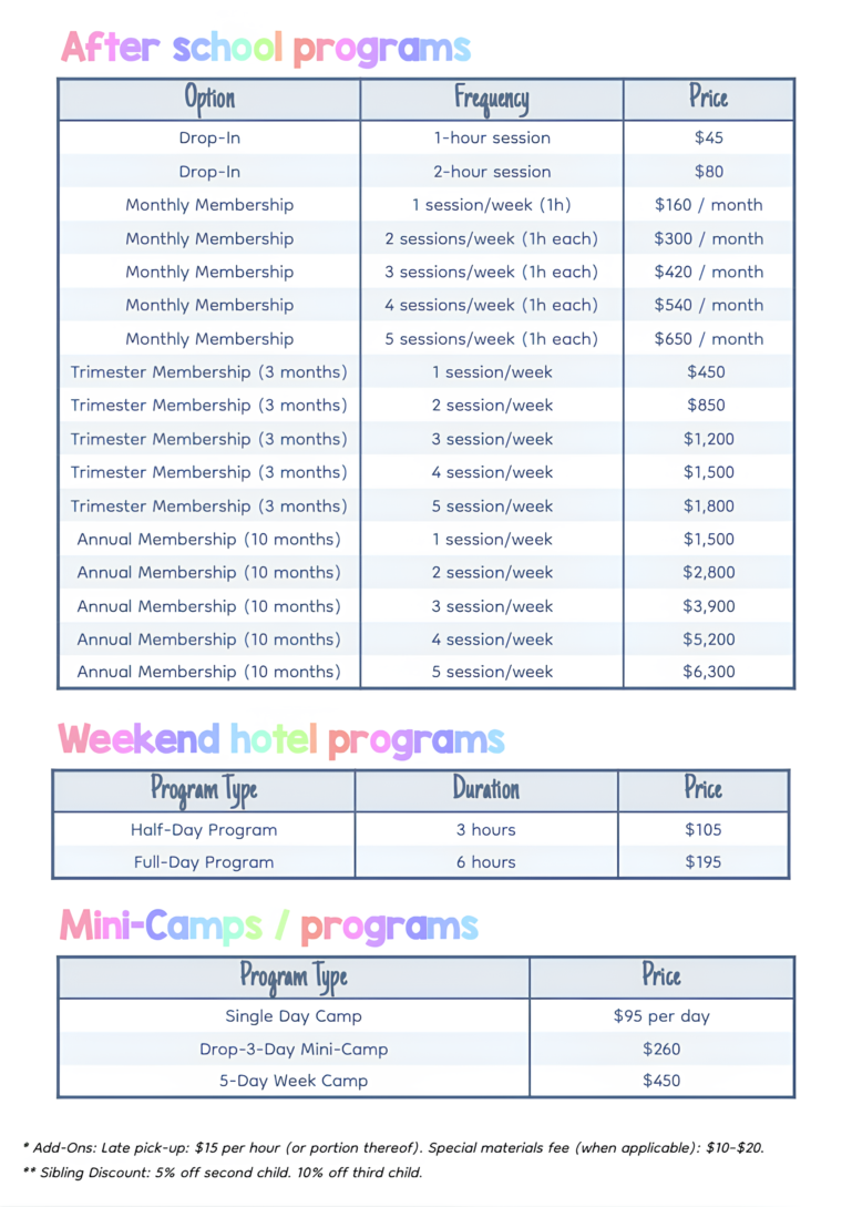 Choose a date, the number of sessions or a mini-camp, then check out securely.